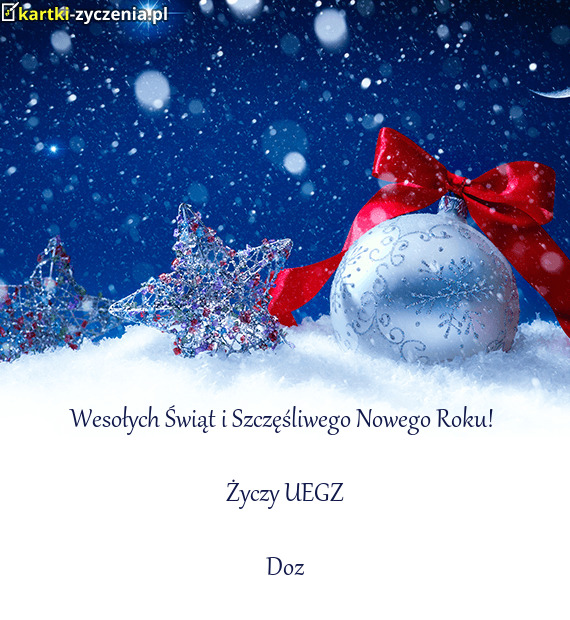 Wesołych Świąt i Szczęśliwego Nowego Roku! Życzy UEGZ - Gotowa Kartka bożonarodzeniowa