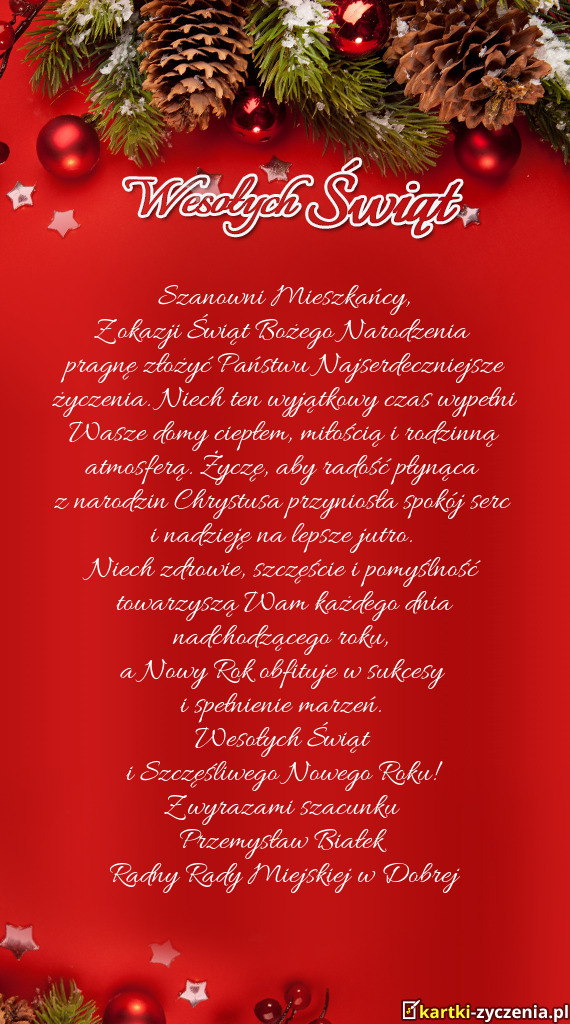 Wesołych Świąt i szczęśliwego Nowego Roku życzy - Gotowa Kartka bożonarodzeniowa