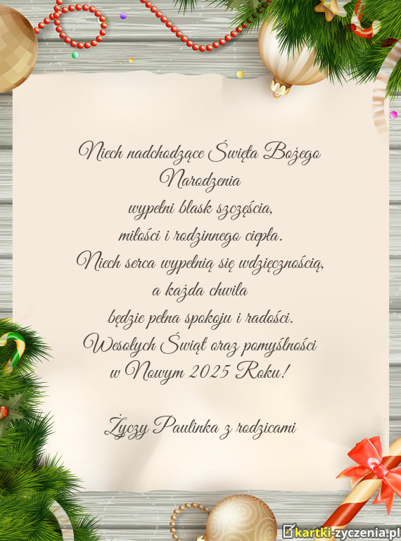Wesołych Świąt! Życzy Alicja - Gotowa Kartka bożonarodzeniowa