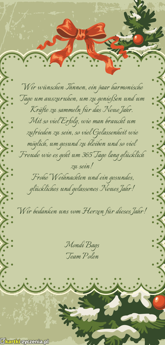 Wir wünschen Ihnnen, ein paar harmonische Tage um auszuruhen, um zu genießen und um Kräfte zu sam - Gotowa Kartka bożonarodzeniowa