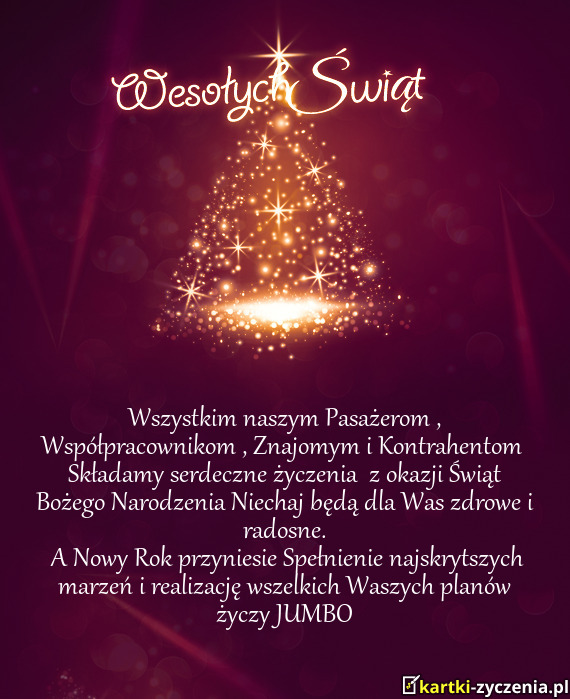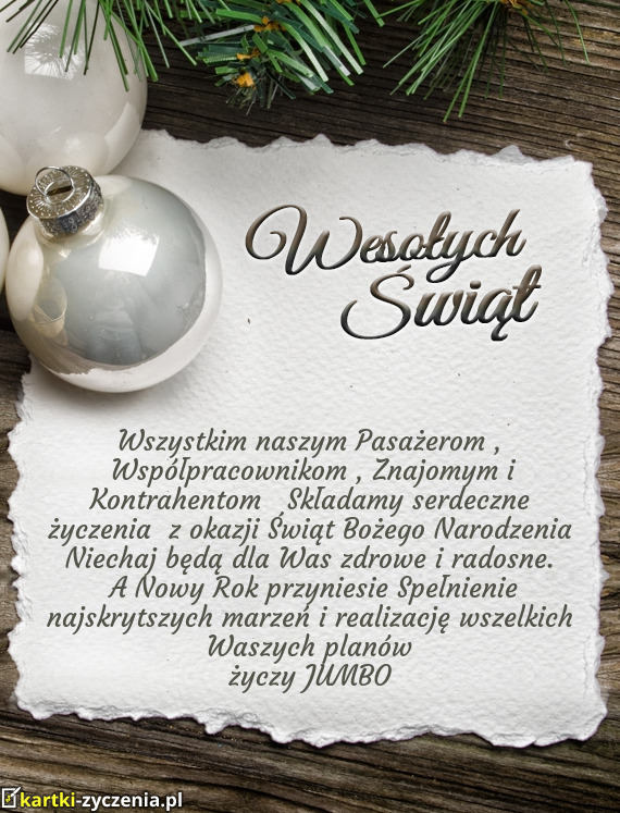 Współpracownikom , Znajomym i Kontrahentom Składamy serdeczne życzenia z okazji Świąt Bożego Narodzenia Niechaj będą dla Was zdrowe i radosne.