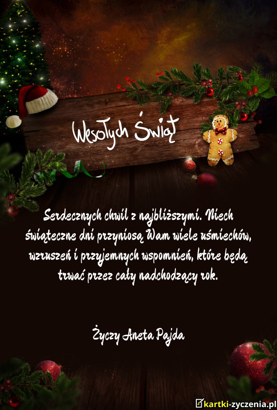 Wszystkiego najlepszego z okazji Świąt Bożego Narodzenia oraz pomyślności w nadchodzącym Nowym - Gotowa Kartka bożonarodzeniowa