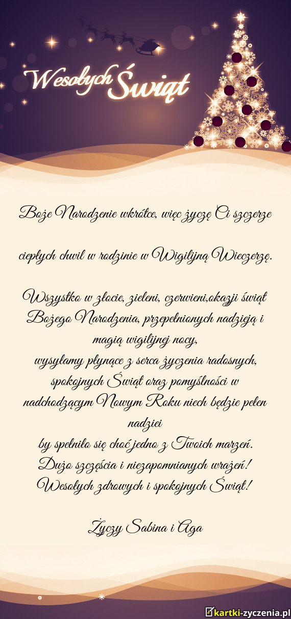 Boże Narodzenie wkrótce, więc życzę Ci szczerze