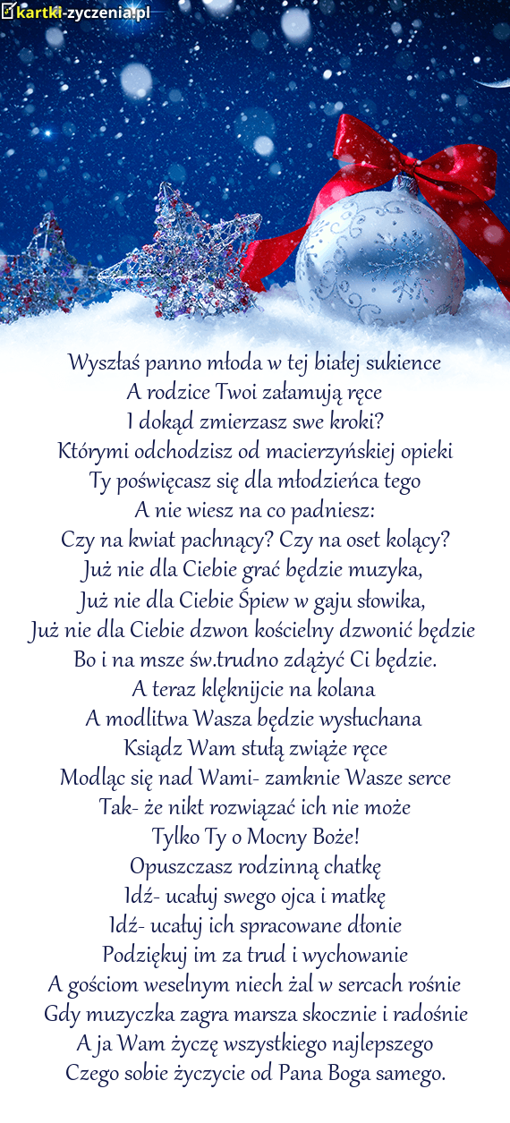 Wyszłaś panno młoda w tej białej sukience - Gotowa Kartka bożonarodzeniowa