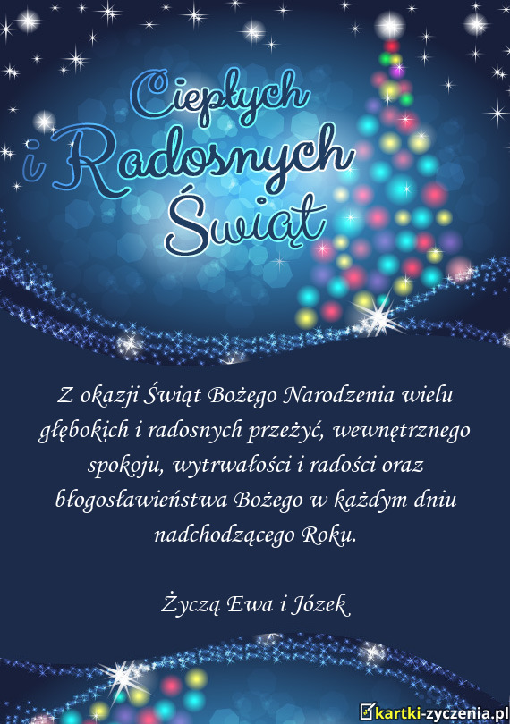Z okazji Świąt Bożego Narodzenia wielu głębokich i radosnych przeżyć, wewnętrznego spokoju, wytrwałości i radości oraz błogosławieństwa Bożego w każdym dniu nadchodzącego Roku.