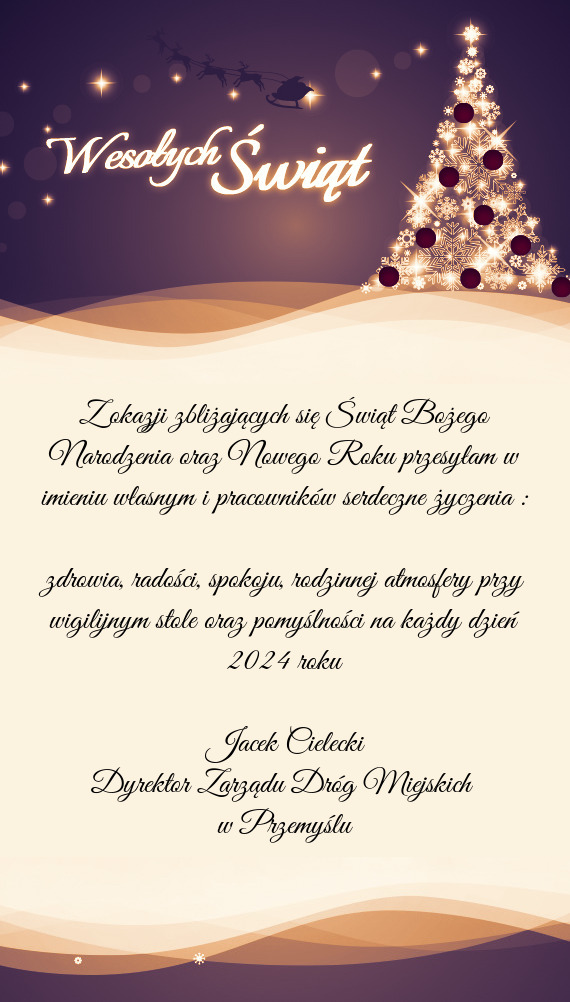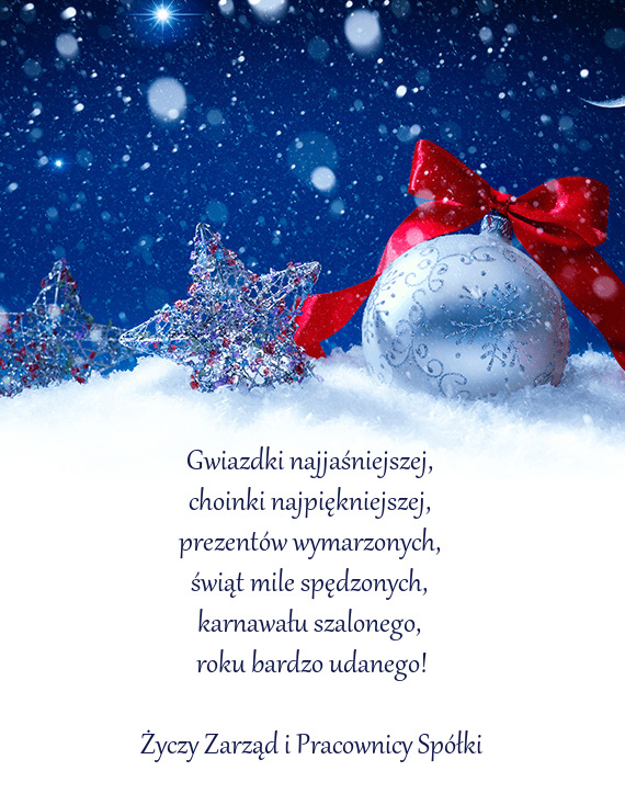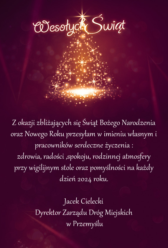 Z okazji zbliżających się Świąt Bożego Narodzenia oraz Nowego Roku przesyłam w imieniu własnym i pracowników serdeczne życzenia :