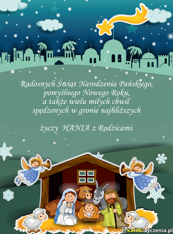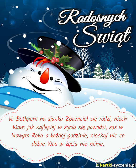 W Betlejem na sianku Zbawiciel się rodzi, niech Wam jak najlepiej w życiu się powodzi, zaś w Nowym Roku o każdej godzinie, niechaj nic co dobre Was w życiu nie minie.
