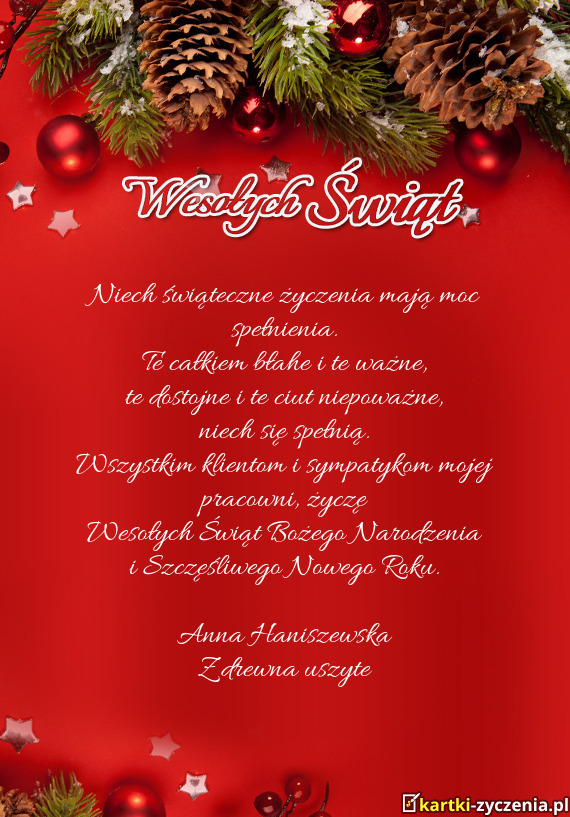 Wszystkim klientom i sympatykom mojej pracowni, życzę