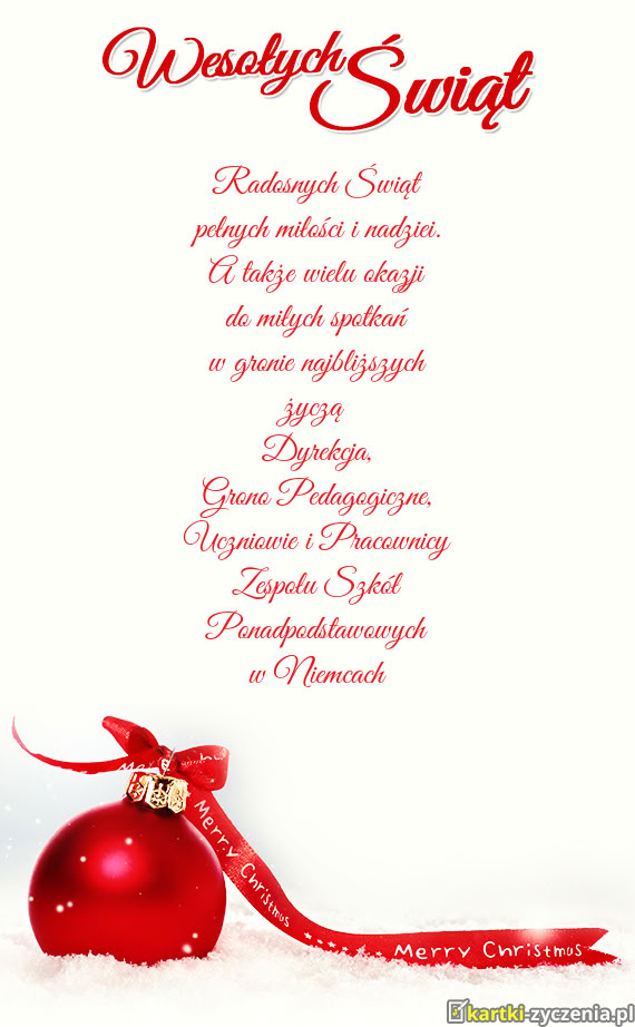 Z OKAZJI ŚWIĄT BOŻEGO NARODZENIA ŻYCZĘ KOLEŻANKOM I KOLEGOM SPOKOJU, RADOŚCI PODCZAS SPOTKAŃ Z NAJBLIŻSZYMI ORAZ SUKCESÓW ZAWODOWYCH I NOWYCH WYZWAŃ W NADCHODZĄCYM ROKU.
