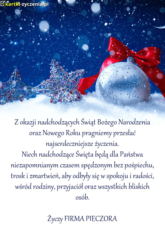 Z okazji nadchodzących Świąt Bożego Narodzenia oraz Nowego Roku pragniemy przesłać najserdeczn - Gotowa Kartka bożonarodzeniowa