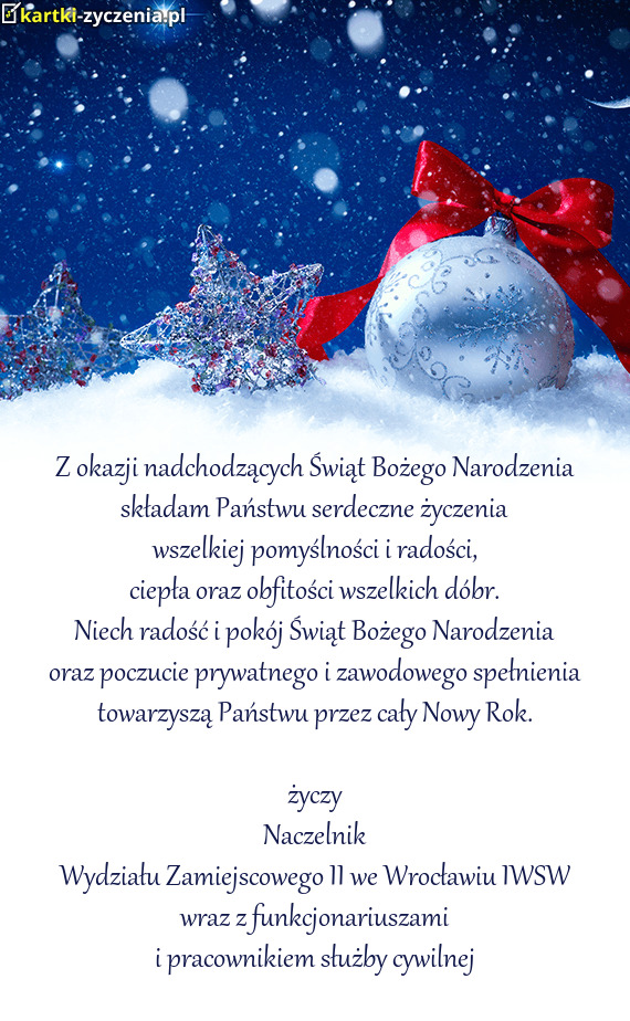 Z okazji nadchodzących Świąt Bożego Narodzenia składam Państwu serdeczne życzenia wszelkiej - Gotowa Kartka bożonarodzeniowa