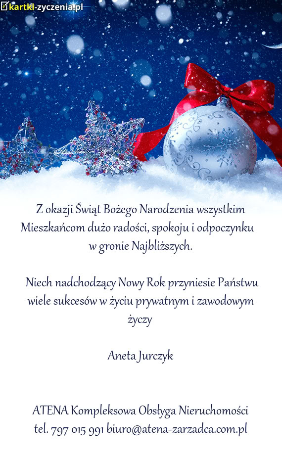 Z okazji nadchodzących Świąt Bożego Narodzenia składamy najserdeczniejsze życzenia - Gotowa Kartka bożonarodzeniowa