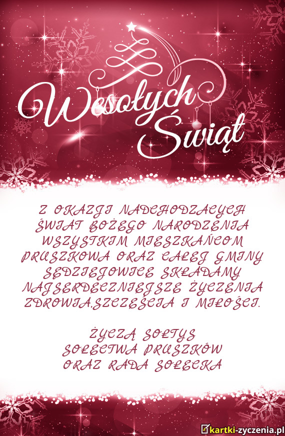 Z OKAZJI NADCHODZACYCH ŚWIAT BOŻEGO NARODZENIA WSZYSTKIM MIESZKAŃCOM PRUSZKOWA ORAZ CAŁEJ GMINY - Gotowa Kartka bożonarodzeniowa