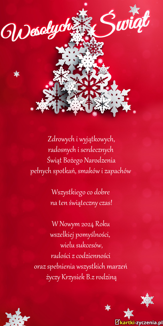 Z okazji nadchodzących Świąt Bożego Narodzenia życzę radosnych i pięknych chwil spędzonych w gronie najbliższych oraz wspaniałego roku 2024.