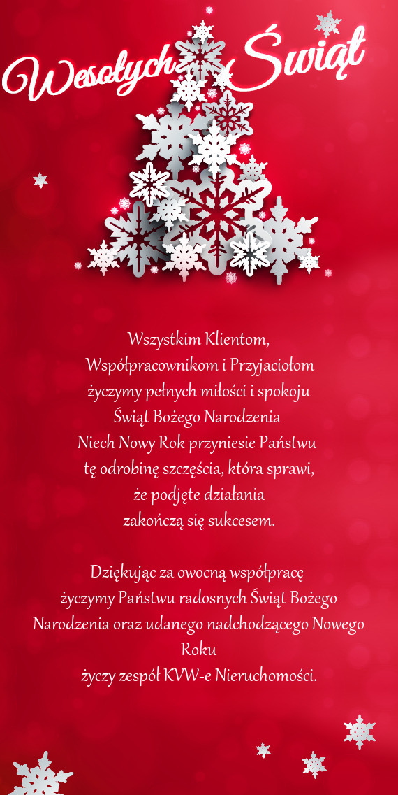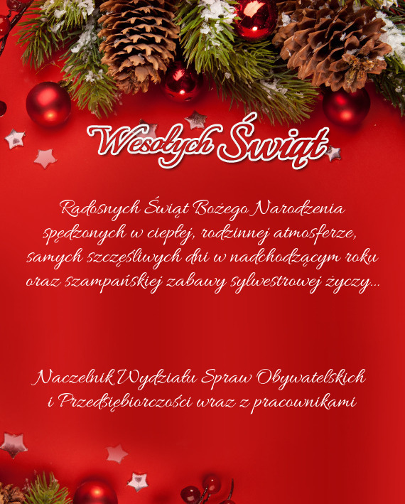Z okazji nadchodzących Świąt Bożego Narodzenia życzymy Wam mnóstwo zadowolenia. Wielu satysfakcji z podejmowanych wyzwań. Najpiękniejszych Świąt Bożego Narodzenia!
