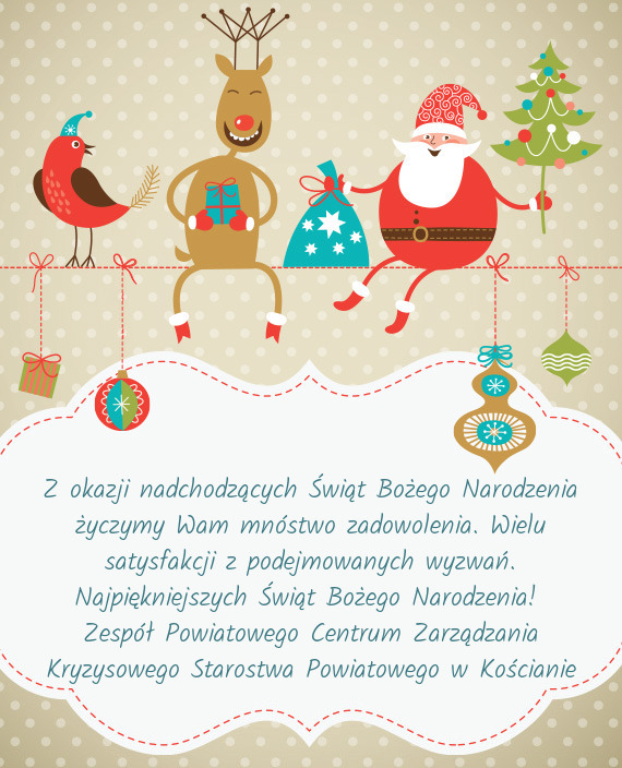 Z okazji nadchodzących Świąt Bożego Narodzenia życzymy Wam mnóstwo zadowolenia. Wielu satysfak - Gotowa Kartka bożonarodzeniowa