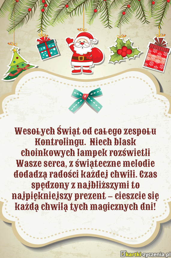 Z okazji nadchodzących Świąt oraz zbliżającego się Nowego Roku życzymy pełnych radości, spokoju i rodzinnego ciepła Świąt Bożego Narodzenia oraz wszelkiej pomyślności w Nowym Roku. Niech 2025 rok przyniesie Państwu dalszy rozwój, sukcesy i wiele nowych możliwości.