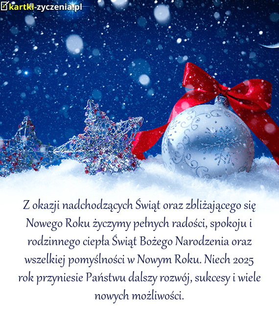 Z okazji nadchodzących Świąt oraz zbliżającego się Nowego Roku życzymy pełnych radości, spo - Gotowa Kartka bożonarodzeniowa