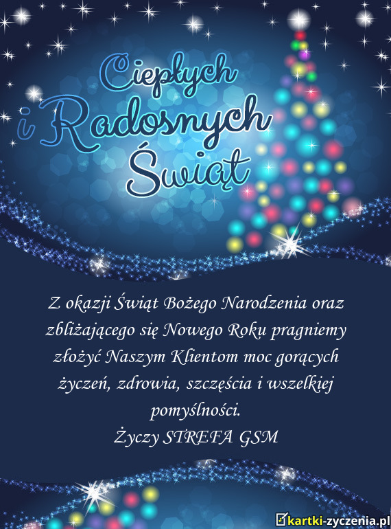 Z okazji Świąt Bożego Narodzenia oraz zbliżającego się Nowego Roku pragniemy złożyć Naszym - Gotowa Kartka bożonarodzeniowa