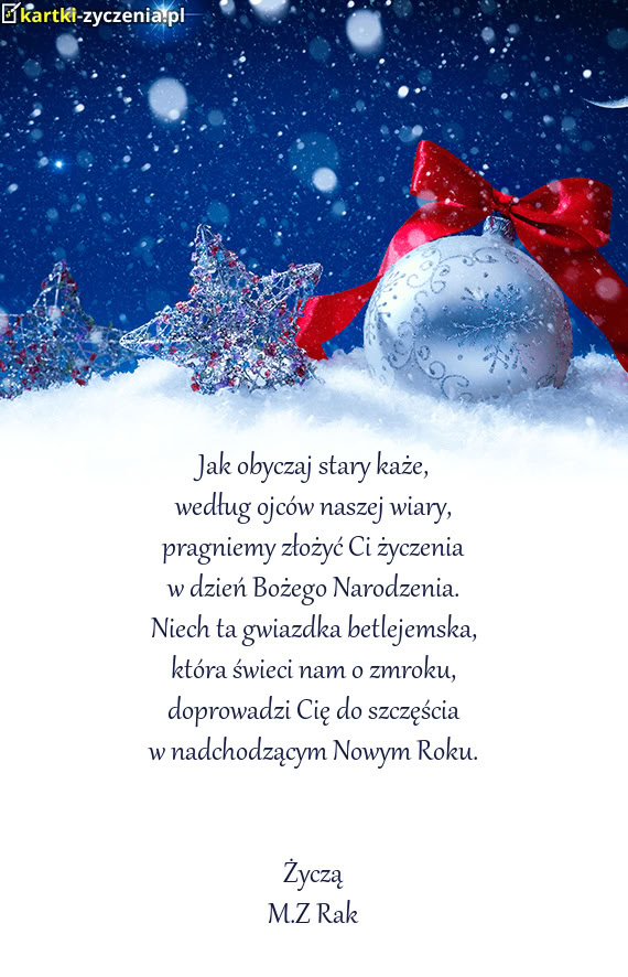 Z okazji Świąt Bożego Narodzenia pragniemy serdecznie podziękować za zaufanie, współpracę or - Gotowa Kartka bożonarodzeniowa