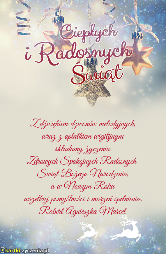 Z okazji Świąt Bożego Narodzenia składamy najserdeczniejsze życzenia: zdrowia, spokoju - Gotowa Kartka bożonarodzeniowa