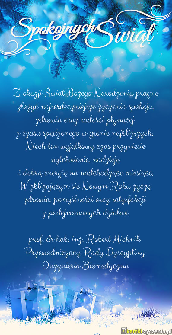 Z okazji Świąt Bożego Narodzenia składamy najserdeczniejsze życzenia zdrowia, sukcesów oraz wszelkiej pomyślności w nadchodzącym Nowym Roku.