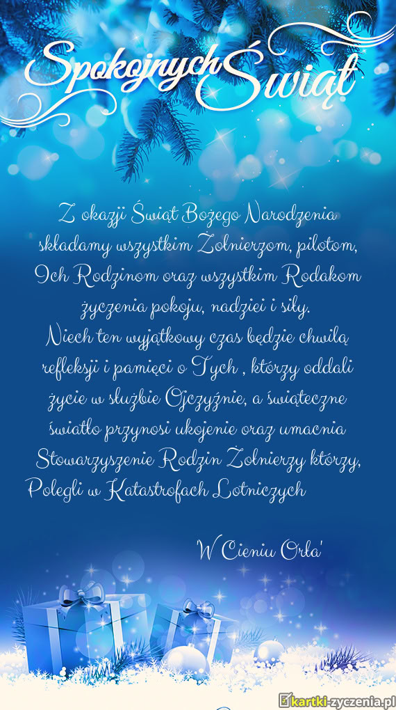 Z okazji Świąt Bożego Narodzenia składamy wszystkim Żołnierzom, pilotom, Ich Rodzinom oraz wsz - Gotowa Kartka bożonarodzeniowa