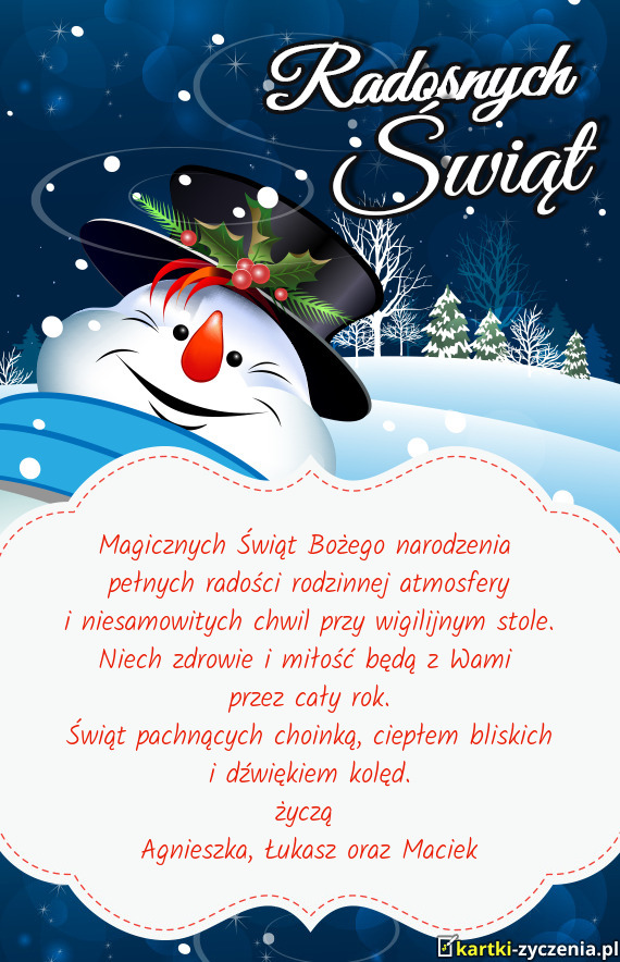 Z okazji Świąt Bożego Narodzenia życzę by radosny czas oczekiwania przerodził się w chwile pe - Gotowa Kartka bożonarodzeniowa