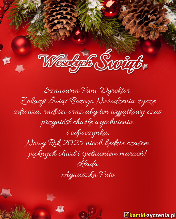 Z okazji Świąt Bożego Narodzenia życzę zdrowia, radości oraz aby ten wyjątkowy czas przyniósł chwilę wytchnienia
