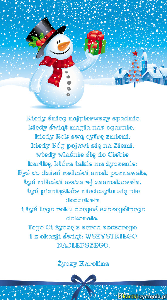 Z okazji Świąt Bożego Narodzenia życzy spokoju i rodzinnego ciepła - Gotowa Kartka bożonarodzeniowa