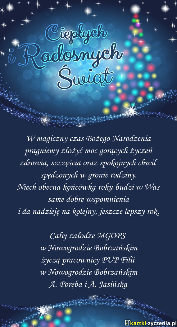 Z okazji Świąt Bożego Narodzenia życzymy Wam aby wszystkie chwile spędzone w rodzinnym gronie b - Gotowa Kartka bożonarodzeniowa