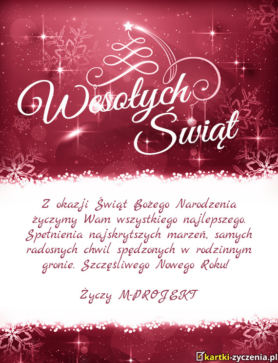 Z okazji Świąt Bożego Narodzenia życzymy Wam wszystkiego najlepszego. Spełnienia najskrytszych - Gotowa Kartka bożonarodzeniowa