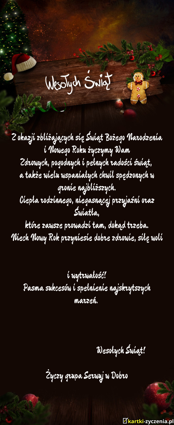 Z okazji zbliżających się Świąt Bożego Narodzenia i Nowego Roku życzymy Wam - Gotowa Kartka bożonarodzeniowa