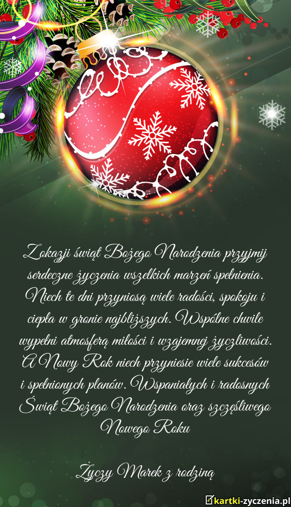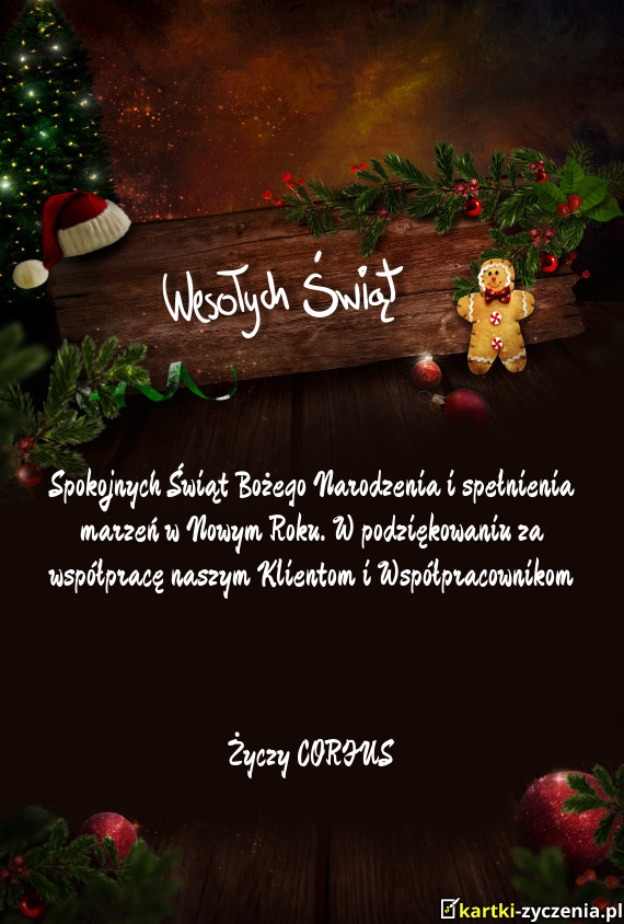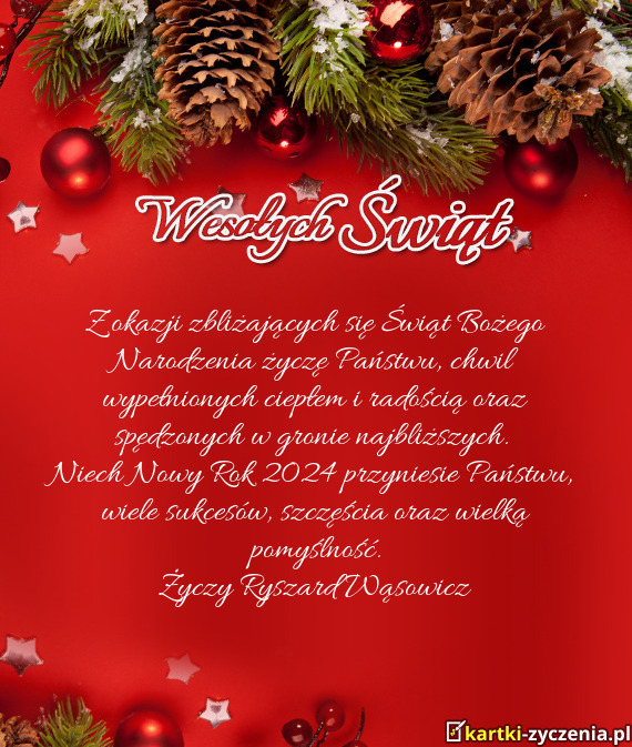 Z okazji zbliżających się Świąt Bożego Narodzenia życzę Państwu, chwil wypełnionych ciepł - Gotowa Kartka bożonarodzeniowa