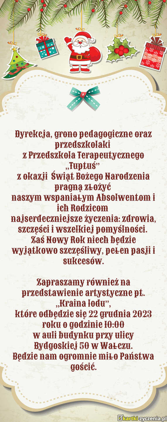 Z Przedszkola Terapeutycznego „Tuptuś” - Gotowa Kartka bożonarodzeniowa