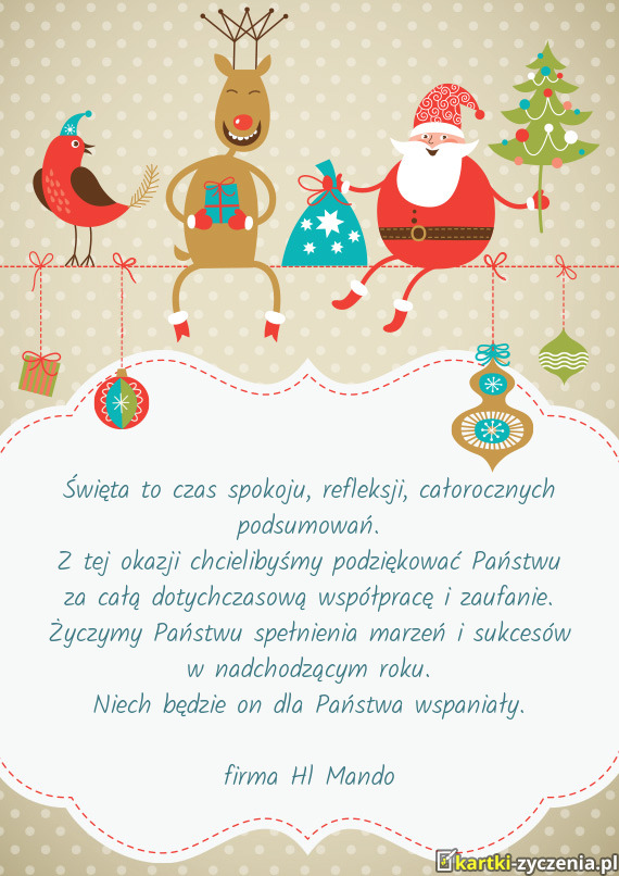 Z tej okazji chcielibyśmy podziękować Państwu - Gotowa Kartka bożonarodzeniowa
