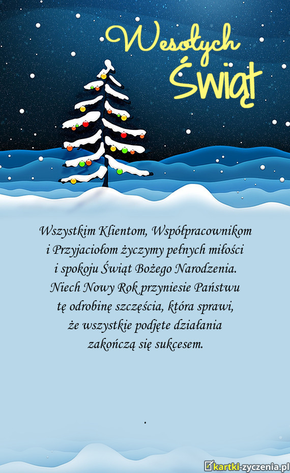 Zbliżające się święta są jak magiczna aura, która otacza nas ciepłem i radością. Z tej okazji pragniemy złożyć najserdeczniejsze życzenia. Niech Boże Narodzenie napełni Wasze serca miłością i radością. Niech nadchodzący 2024 rok będzie czasem sukcesów, spełnienia marzeń oraz udanych inwestycji. Zdrowia, siły i wytrwałości w dążeniu do realizacji Waszych celów życzą pracownicy oraz Zarząd