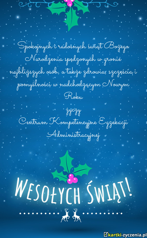 Spokojnych i radosnych świąt Bożego Narodzenia spędzonych w gronie najbliższych osób, a także zdrowia, szczęścia i pomyślności w nadchodzącym Nowym Roku
