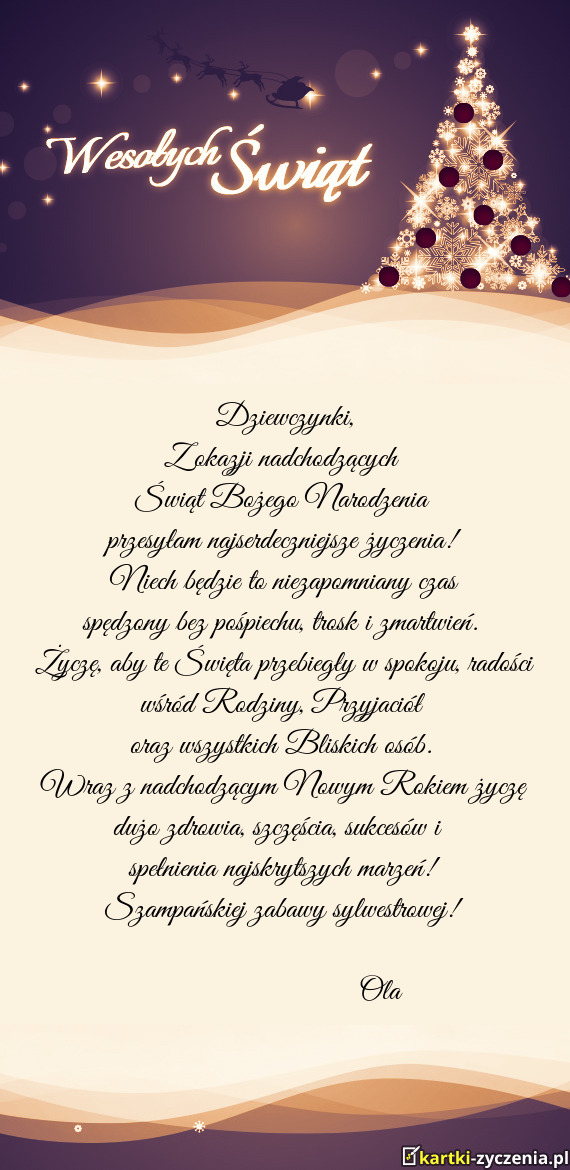 Zdrowych i spokojnych, pełnych radości i miłości, spędzonych w rodzinnej atmosferze Świąt Bożego Narodzenia. Wszelkiej pomyślności w Nowym Roku, realizacji własnych celów oraz spełnienia marzeń
