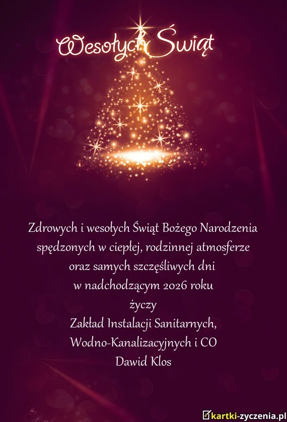 Zdrowych i wesołych Świąt Bożego Narodzenia spędzonych w ciepłej, rodzinnej atmosferze - Gotowa Kartka bożonarodzeniowa