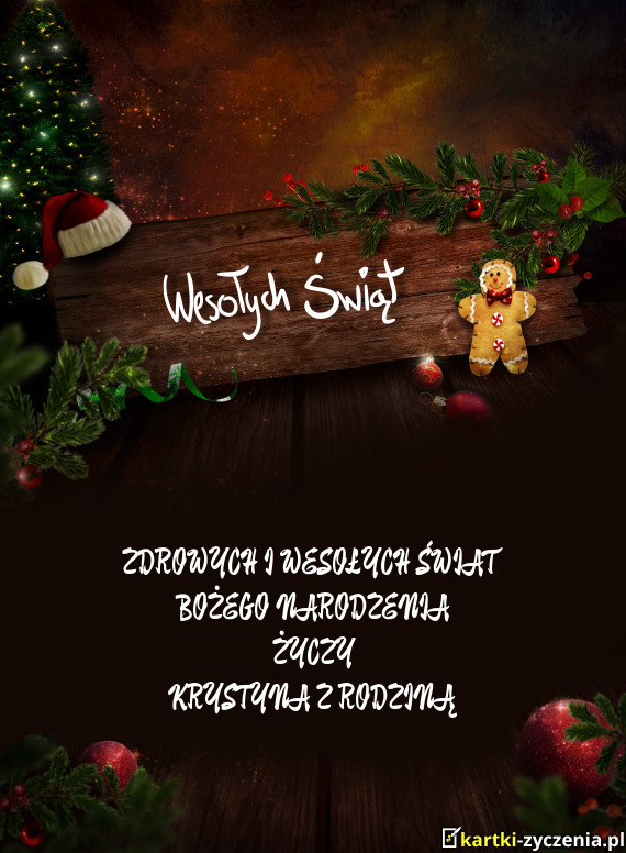 ZDROWYCH I WESOŁYCH ŚWIAT BOŻEGO NARODZENIA ŻYCZY KRYSTYNA Z RODZINĄ - Gotowa Kartka bożonarodzeniowa