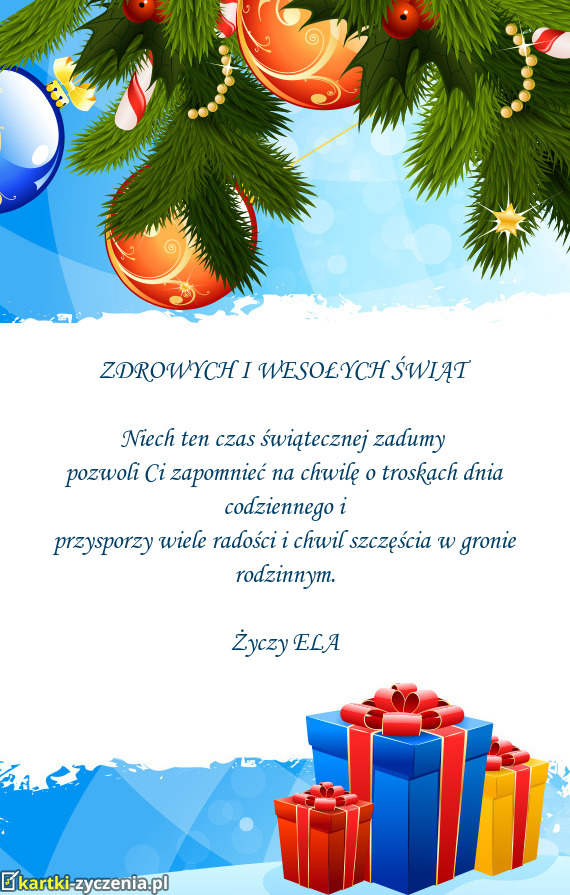 ZDROWYCH I WESOŁYCH ŚWIĄT Niech ten czas świątecznej zadumy pozwoli Ci zapomnieć na chwil - Gotowa Kartka bożonarodzeniowa