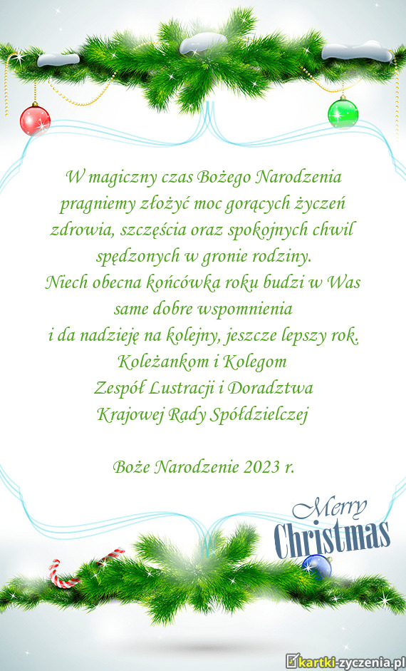 Zespół Lustracji i Doradztwa - Gotowa Kartka bożonarodzeniowa