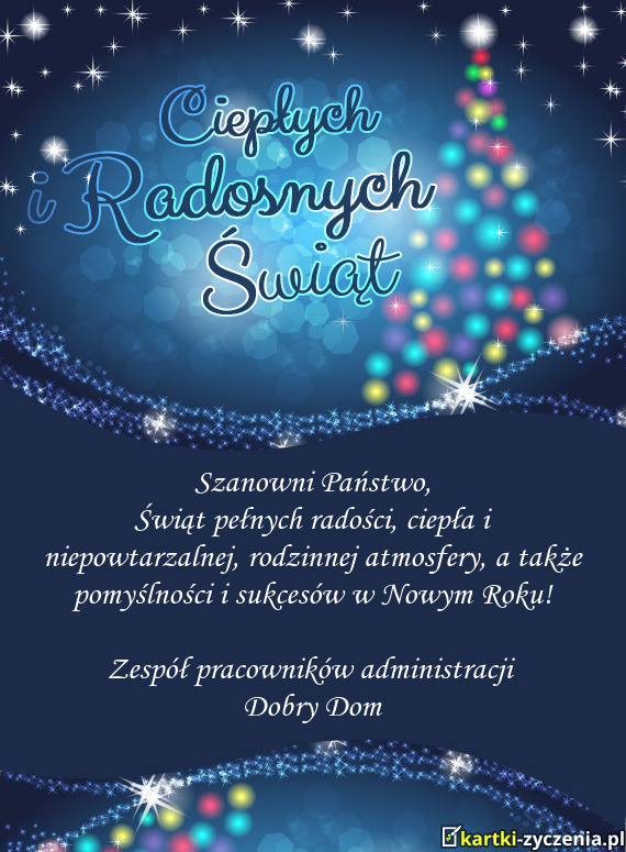 Świąt pełnych radości, ciepła i niepowtarzalnej, rodzinnej atmosfery, a także pomyślności i sukcesów w Nowym Roku!