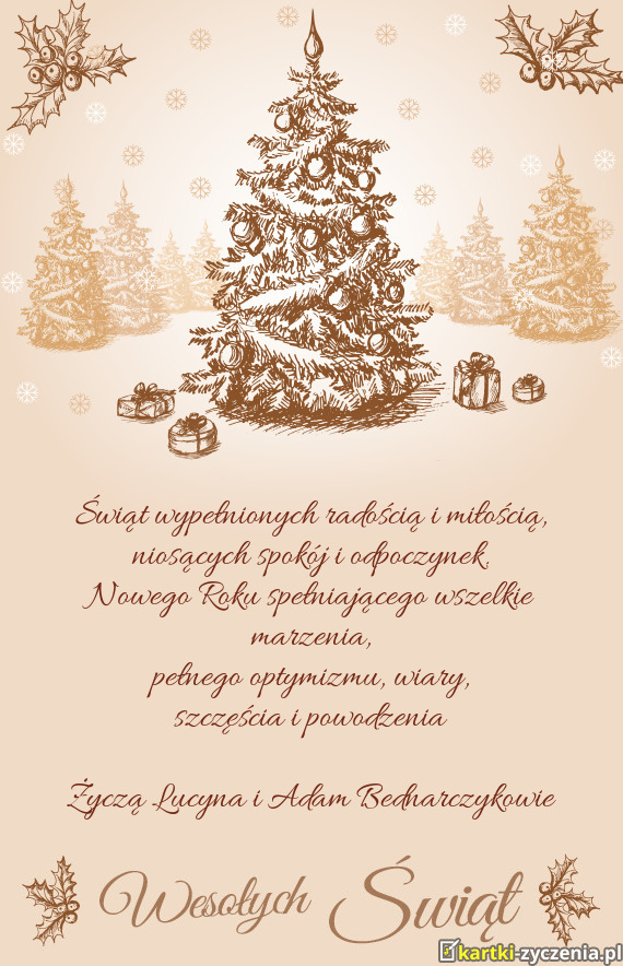 Niech te święta Bożego Narodzenia przyniosą Wam wiele radości – wspólnie spędzonego czasu, rodzinnej atmosfery, dużo radości i tyle optymizmu, by nie skończył się przez cały zbliżający się rok. Życzę Wam, abyście to Boże Narodzenie spędzili w atmosferze miłości i wzajemnego zrozumienia. Wesołych Świąt i szczęśliwego Nowego Roku