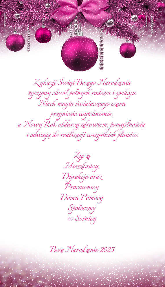 Życzy Dorota Jewniewicz Wójt Gminy Pęcław Mirosława Szydłowska kierownik GOPS wraz z praco - Gotowa Kartka bożonarodzeniowa