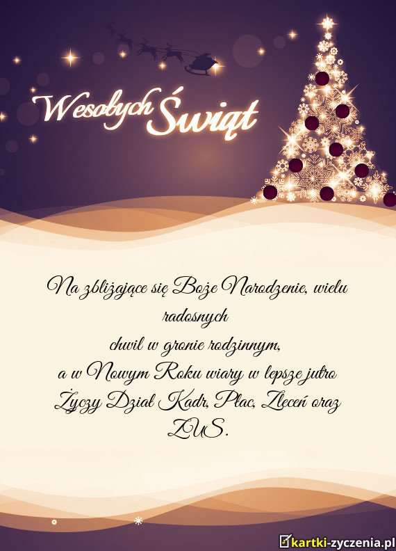 Życzy Dział Kadr, Płac, Zleceń oraz ZUS - Gotowa Kartka bożonarodzeniowa