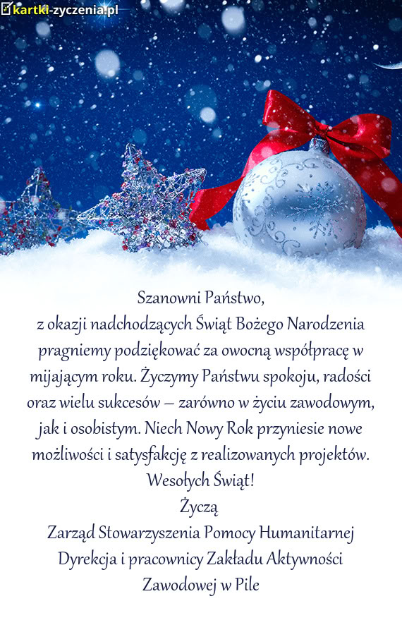 Życzy Kierownik OPS w Baćkowicach wraz z z pracownikami - Gotowa Kartka bożonarodzeniowa