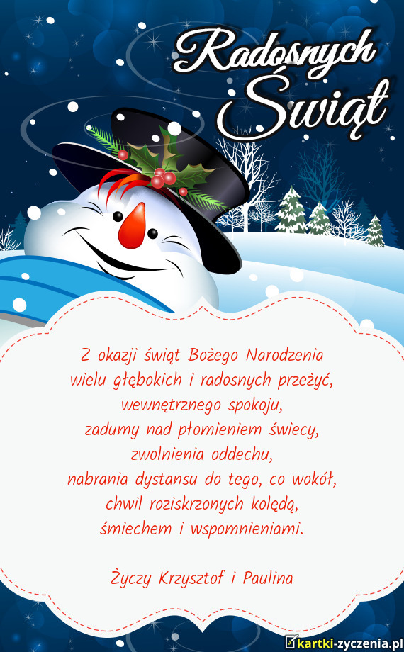 Życzy Paulina i Krzysztof - Gotowa Kartka bożonarodzeniowa