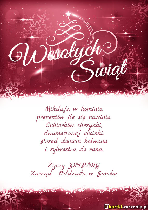 Życzy Renata Stawarska - Gotowa Kartka bożonarodzeniowa